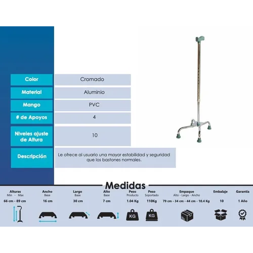 Le ofrece al usuario una mayor estabilidad y seguridad que los bastones normales.