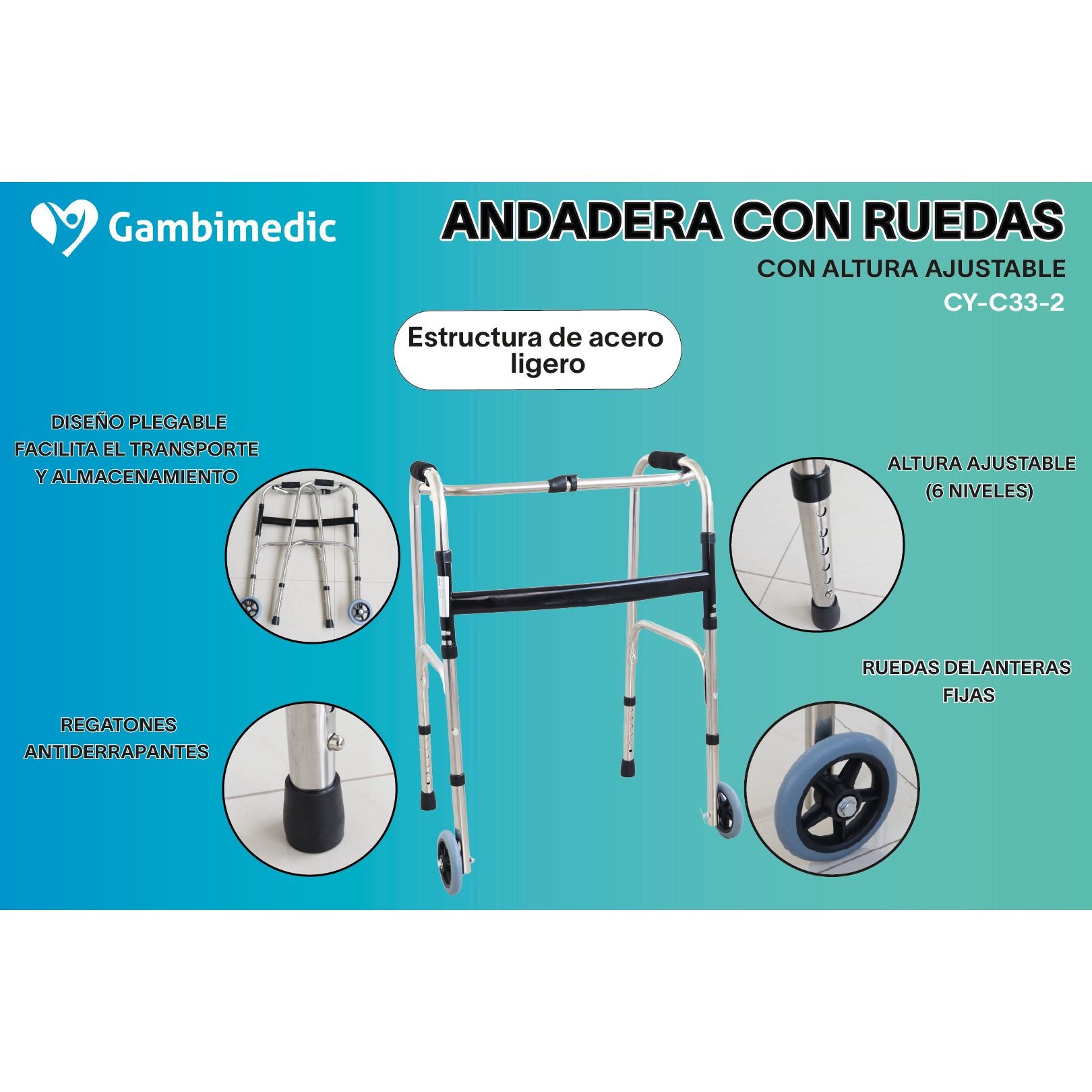 Gambimedic Andadera Con Ruedas Ortopedica Caminador Plegable