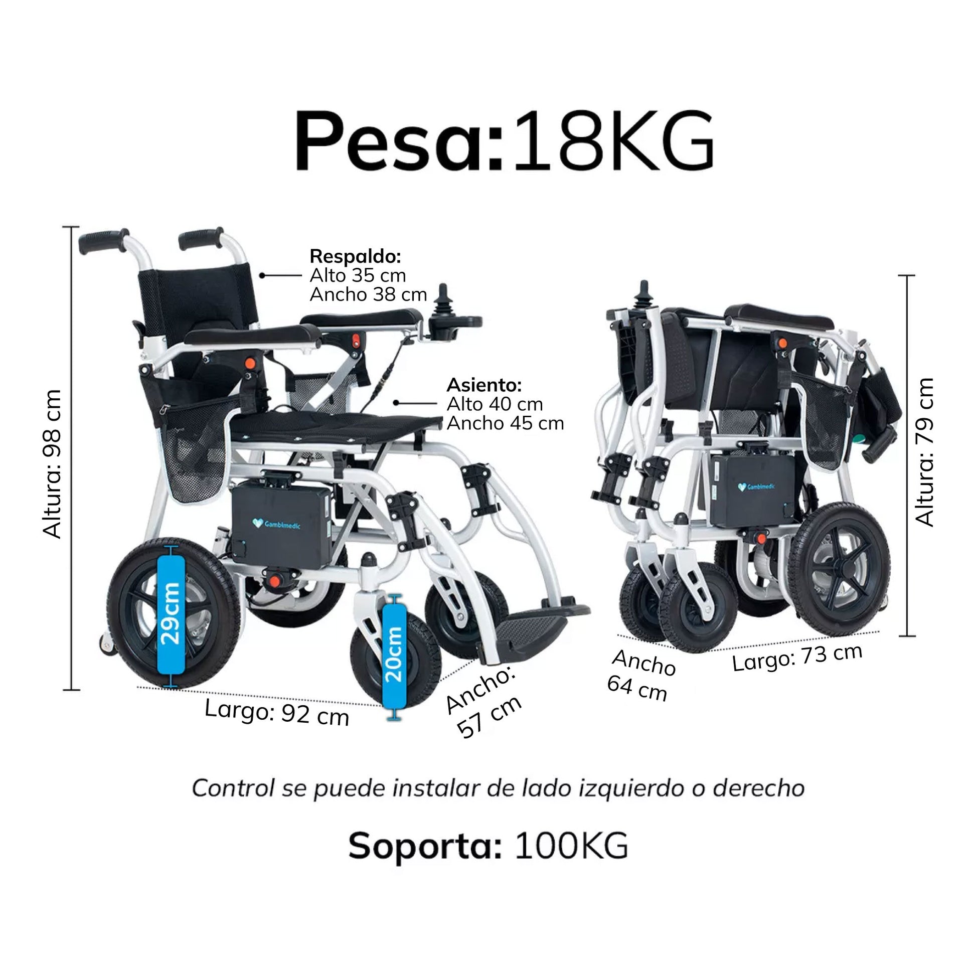 Peso de la silla con bateria: 18KG