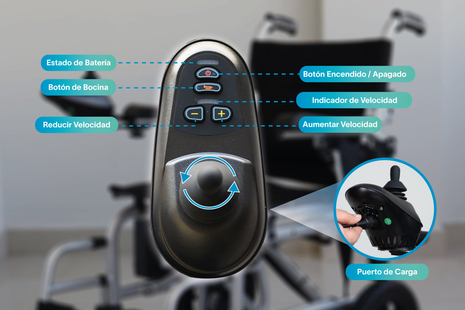 Accesorios: Cargador, Descansa pies abatibles, manual de usuario en español, colchoneta para asiento, colchoneta para respaldo, bolsa en respaldo