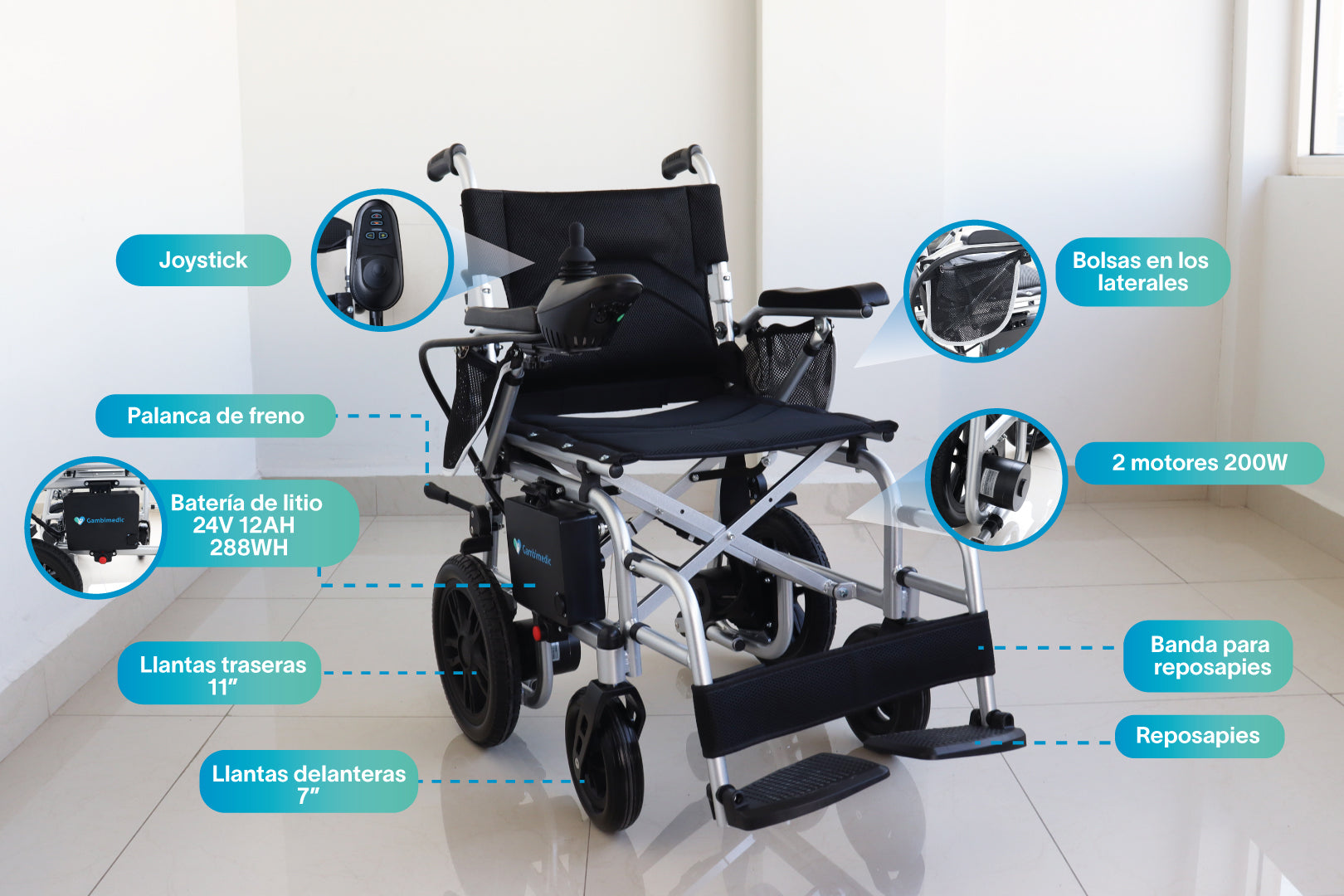 Gambimedic Silla De Ruedas Electrica Aluminio 19kg Super Ligera Portatil Plegable Compacta Todoterreno Control Intercambiable Izquierda o Derecha Soporta 120kg Bateria Litio 24V12AH 288WH