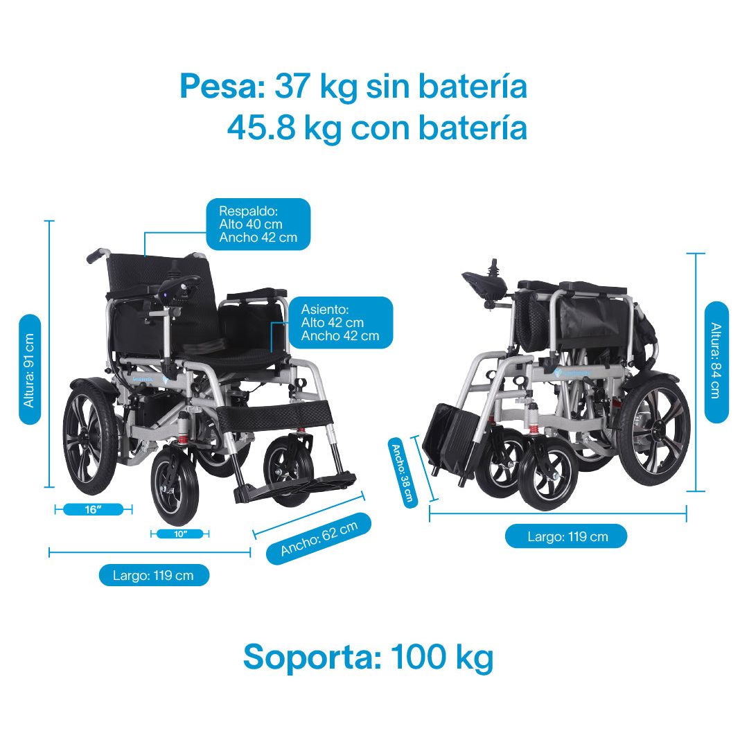 Peso de la silla con bateria: 45.8 KG