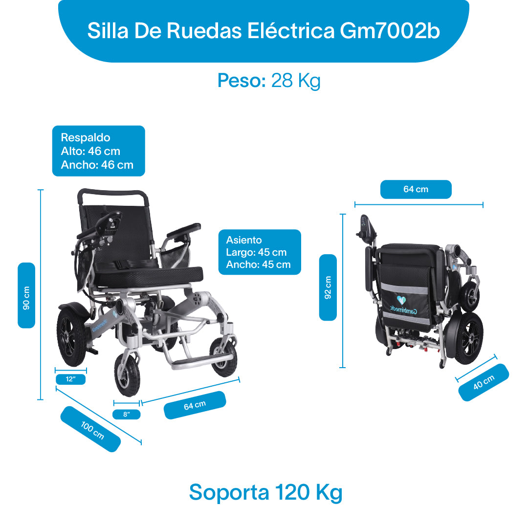 Gambimedic Silla De Ruedas Electrica Plegable Aluminio Ligero Portatil 28kg Mod. Gm7002B Soporta 100kg Llantas Neumaticas De Aire Todoterreno 4 Amortiguadores 2 Motores 250w Bateria Litio 24v12ah 288kw