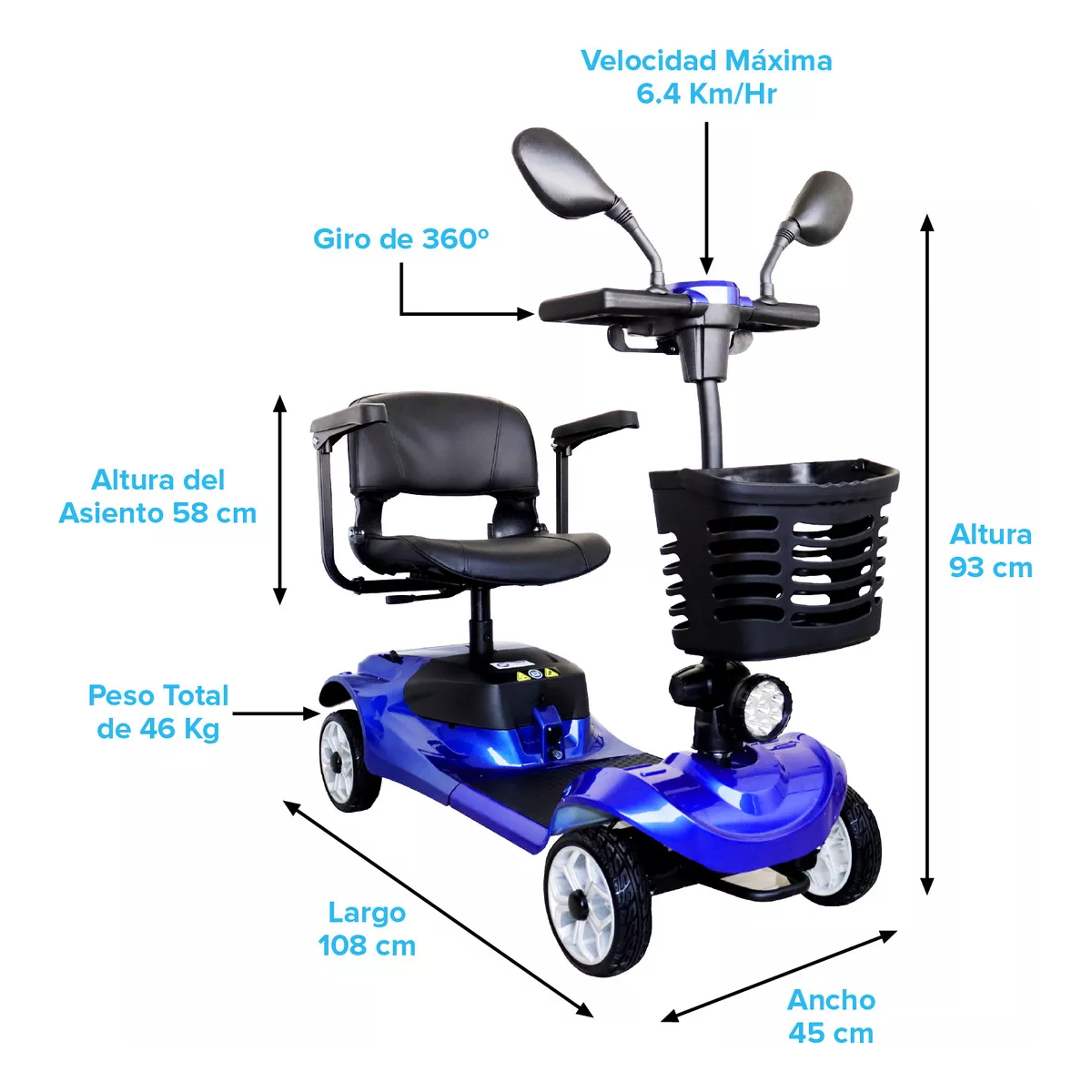 Scooter Electrico 4 Ruedas Silla de Ruedas Electrica Desarmable Soporta Hasta 150KG